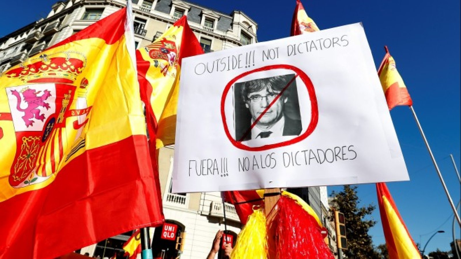 Лидери на партии, защитаващи испанското единство сред управляващите консерватори, либерали и социалисти се обединиха под мотото "Ние сме Каталуния. Здрав разум за съвместно съществуване", отбелязва ДПА.