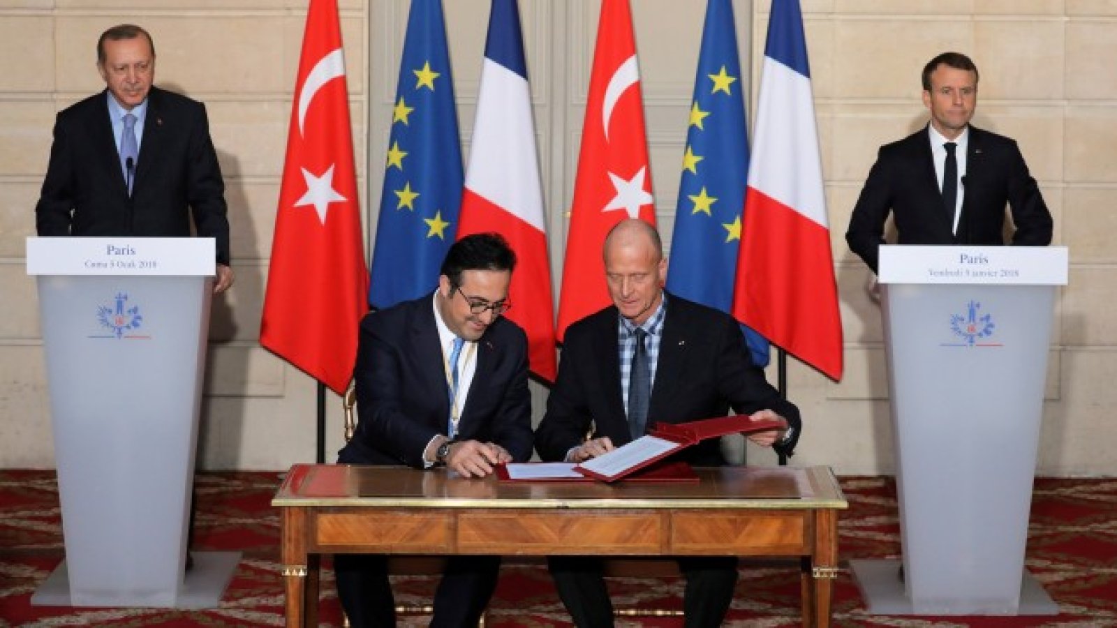 По-конкретна е обаче поръчка от Турция. По време на посещението на турския президент Реджеп Тайип Ердоган в Париж директорът на Airbus Томас Ендерс подписа в петък предварителен договор за доставката на 25 броя Airbus A350-900 за държавната авиокомпания Turkish Airlines. Сега започват преговорите по детайлите.