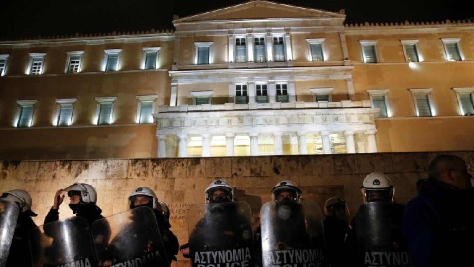 Протестиращите пред парламента пък бяха над 10 хил., допълва DPA. В даден момент около стотина крайнолеви демонстранти започнаха да хвърлят запалителни бомби и камъни срещу полицията, която беше образувала кордон около парламента. Полицията отговори със сълзотворен газ и шокови гранати.