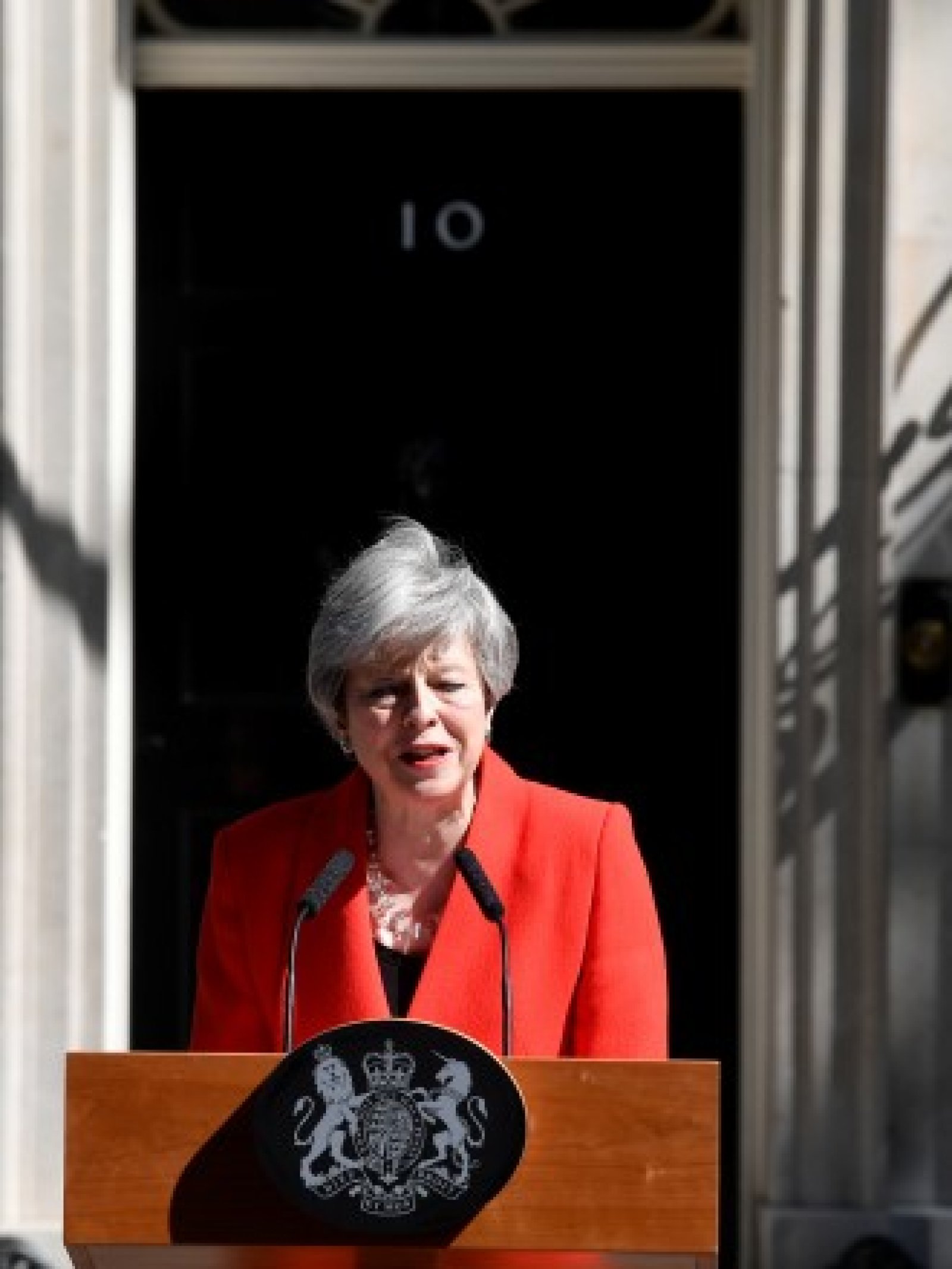 В емоционална реч пред Downing Street 10 тя заяви, че е „направила всичко“, което е могла, за да убеди депутатите да подкрепят споразумението за оттегляне, което договори с Европейския съюз. Но „за дълбоко съжаление“ в крайна сметка не успяла да постигне консенсус сред членовете на парламента.