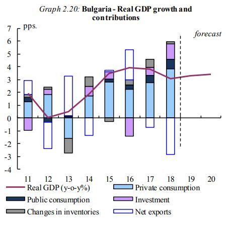 Европейската комисия (ЕК) запазва своите очаквания за икономиката на България в лятната си прогноза. Ръстът на реалния брутен вътрешен продукт (БВП) на страната ни през 2019 г. ще се възстанови до ниво от 3,3% от 3,1% за 2018 г., като през 2020 г. този показател ще достигне 3,4%, съвпадайки с очакванията на пролетната прогноза.