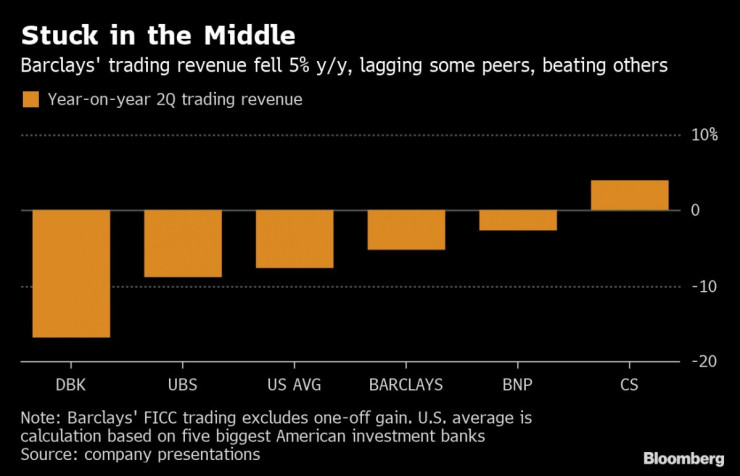 Преди всичко бизнесът с облигации, валути и суровини се справя добре. Приходите в подразделението се покачиха с 25 процента до 920 милиона паунда. При търговията с акции обаче британците, както и много други банки, трябваше да отчетат спадове.