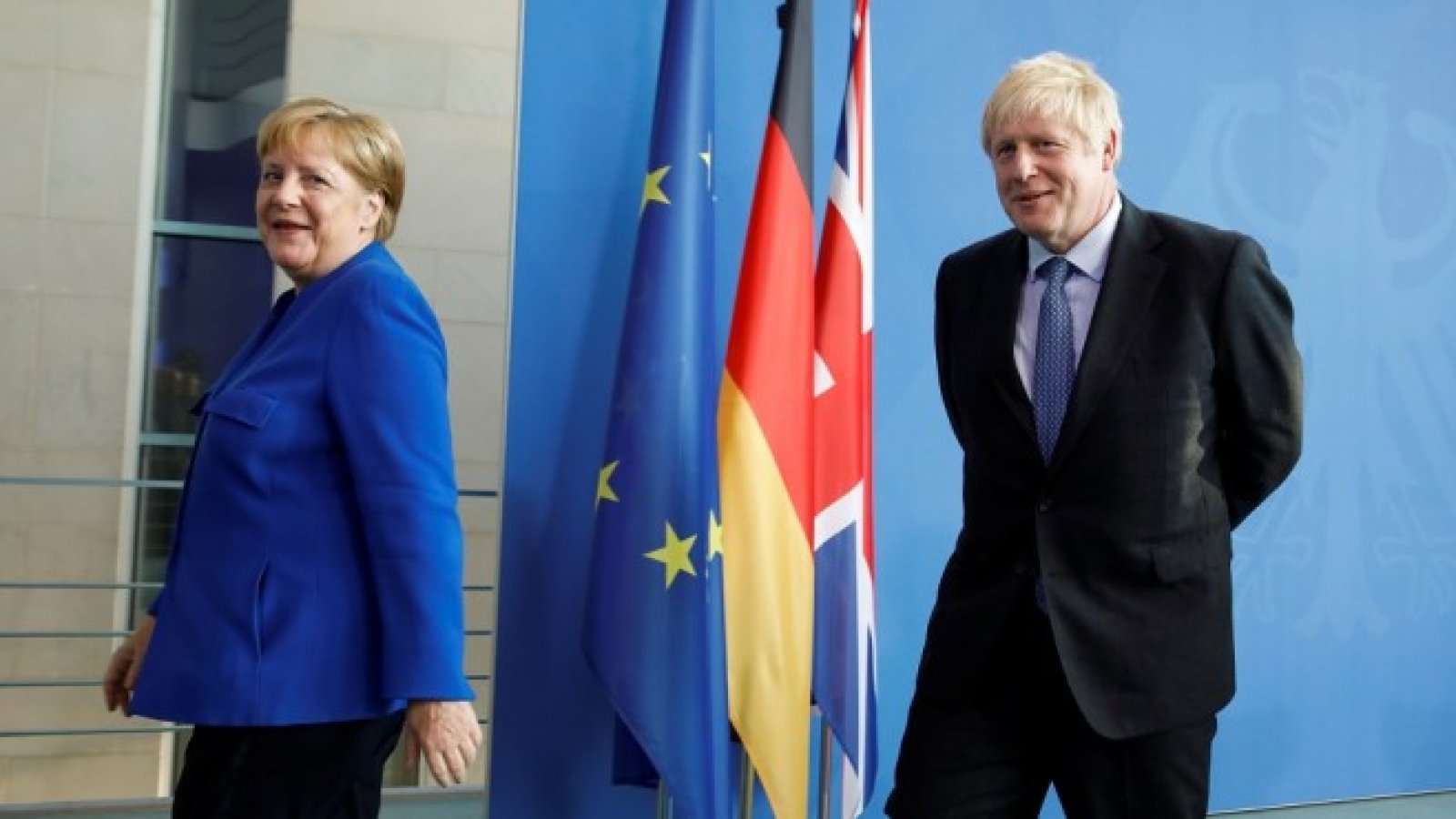 Премиерът на Великобритания Борис Джонсън избра за първото си посещение в чужбина избра Германия, където се срещна с канцлера Ангела Меркел. Снимка: Ройтерс