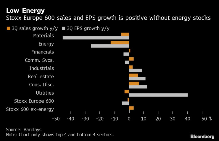 Енергетиката, според Barclays и Bloomberg Intelligence, е секторът, отговорен за голяма част от негативните финансови резултати в региона от този период. Въпреки че печалбата за акция за представителите на паневропейския индекс Stoxx 600 до голяма степен успява да победи силно занижените консенсусни очаквания, тя намалява с около 4,7%, посочва в бележка до клиентите Еманюел Кау, стратег в Barclays.