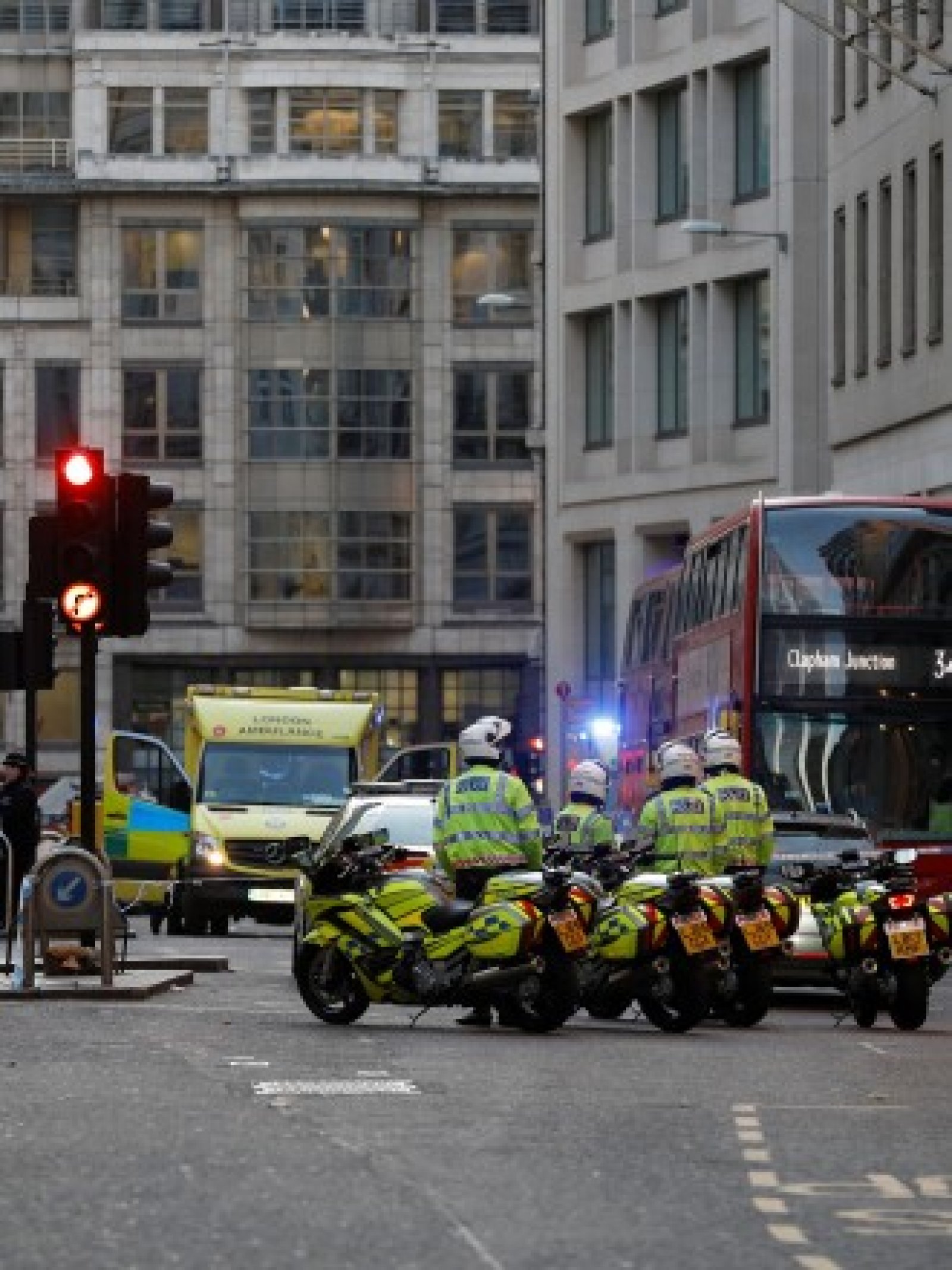 От полицията съобщиха, че сигналът за нападение с нож в заведение близо до моста е получен в 13,58 ч. "Един мъж е задържан от полицията. Смятаме, че няколко души са ранени", се казва в съобщението. Според Sky News един човек е бил застрелян. На мястото има линейки и медицински екипи, допълват АП и БТА.