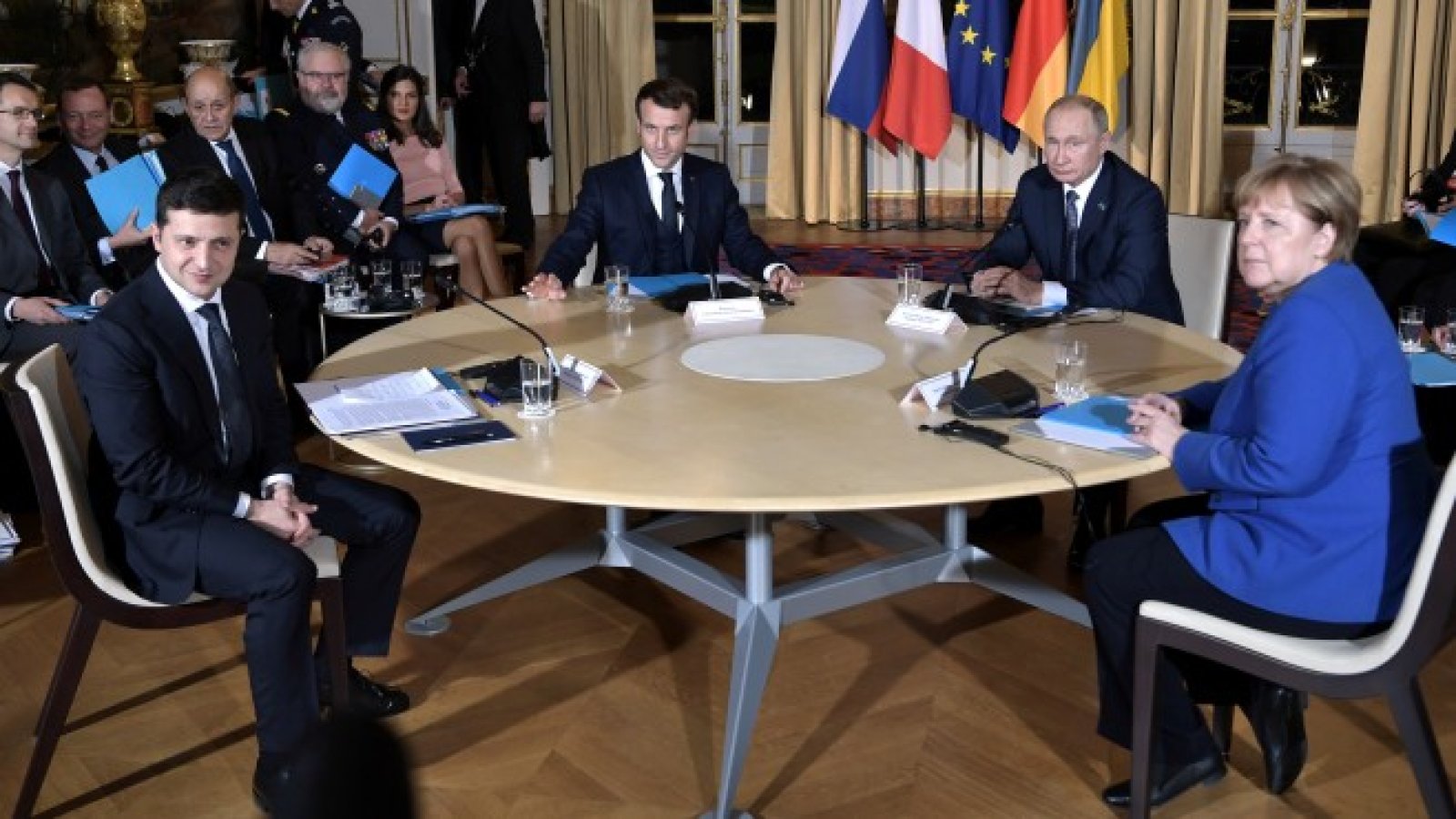 Президентите на Русия и Украйна Владимир Путин и Володимир Зеленски се споразумяха да съживят мирния процес в конфликтната зона в Източна Украйна, съобщи Асошиейтед прес. На срещата в Париж в понеделник в "нормандски формат" заедно с френския президент Еманюел Макрон и германския канцлер Ангела Меркел обаче те не успяха да разрешат ключови въпроси като графика за провеждане на избори в Донбас и контрола на границите в контролирания от бунтовниците район.
