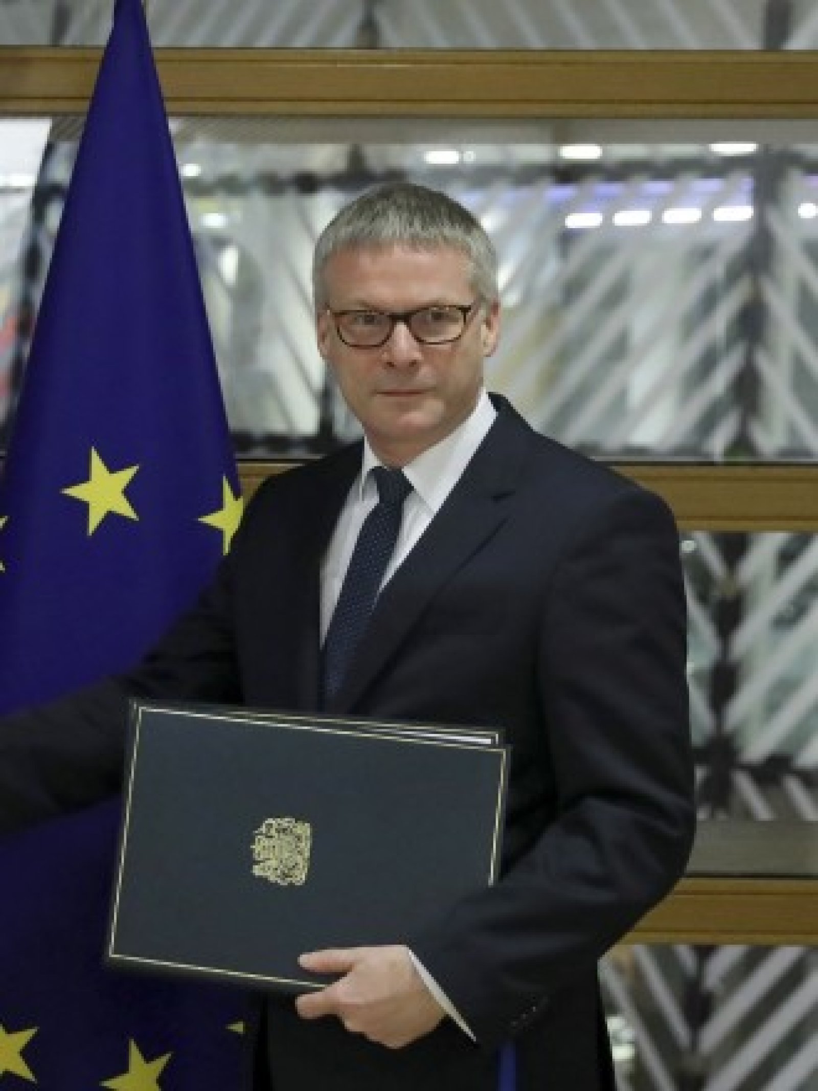 Три години и половина след като британците гласуваха за напускане, усмихнатият Тим Бароу предаде тъмносиня кожена папка с емблемата на Великобритания на фона на британското знаме и това на ЕС. Церемонията се състоя в централата на съюза в Брюксел.