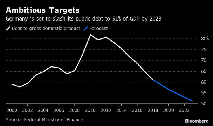 Дори и когато Германия бе на ръба на рецесията миналата година, Меркел устоя на призивите от международните институции за разхлабване коланите. През изминалото десетилетие фискалната дисциплина помогна на Берлин да намали държавния дълг с над 20 пр. п. до под 60% от брутния вътрешен продукт. Миналата година страната записа бюджетен излишък от над 13 млрд. евро.