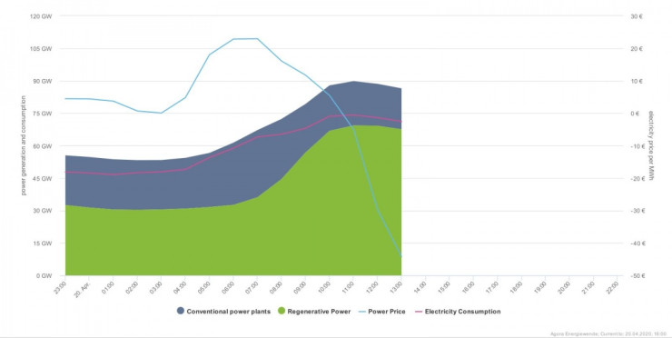 Това доведе до повече на брой часове, при които цените на електроенергията се намират на отрицателни нива, когато потребителите по същество плащат, за да премахнат излишната мощност от мрежата. Явлението обикновено се наблюдава, когато празниците или почивните дни съвпадат със слънчево или ветровито време.