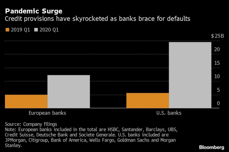 Испанската банка Banco Santander поведе останалите континентални европейски кредитори, които отчитат големи провизии, след като задели 1,6 млрд. евро специално за загуби от кредити. Италианската UniCredit SpA осигури допълнителни 900 млн. евро, Deutsche Bank - около 500 млн. евро, а UBS Group - приблизително 250 млн. евро.