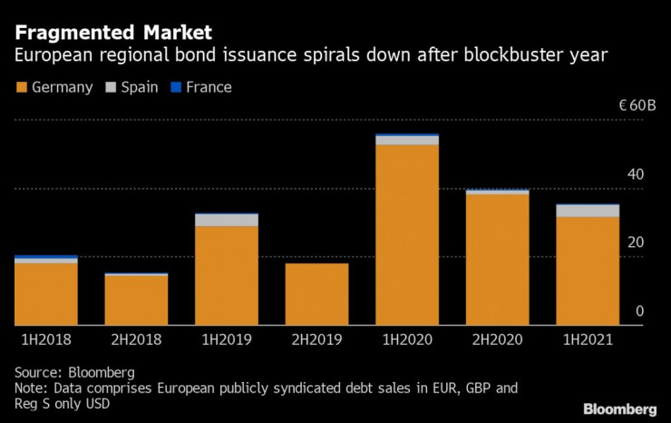 Европейският пазар на регионален дълг е напът да се върне към предпандемичните си нива, посочва Bloomberg.