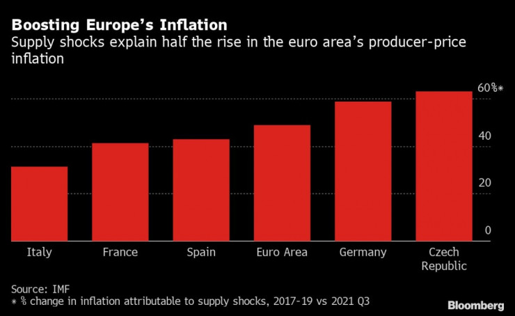 Ограниченията при доставките са отнели 2 пр. п. от икономическия ръст в еврозоната през 2021 г., намалявайки дейността на производството с 6%. Те също така са подхранили инфлацията, генерирайки около половината от увеличението при цените на производител, без да се взимат предвид енергийните разходи, отбелязват от фонда.
