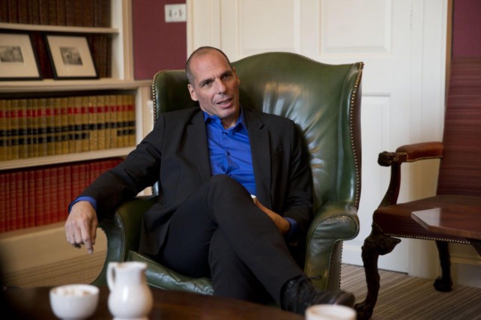 Варуфакис подчерта, че победата на СИРИЗА на изборите на 25 януари създава възможността да се нанесе удар по изгодната връзка между користните интереси в държавния сектор и користните интереси в частния сектор, което влече надолу креативното мислене, конкуренцията, свободата и демокрацията.