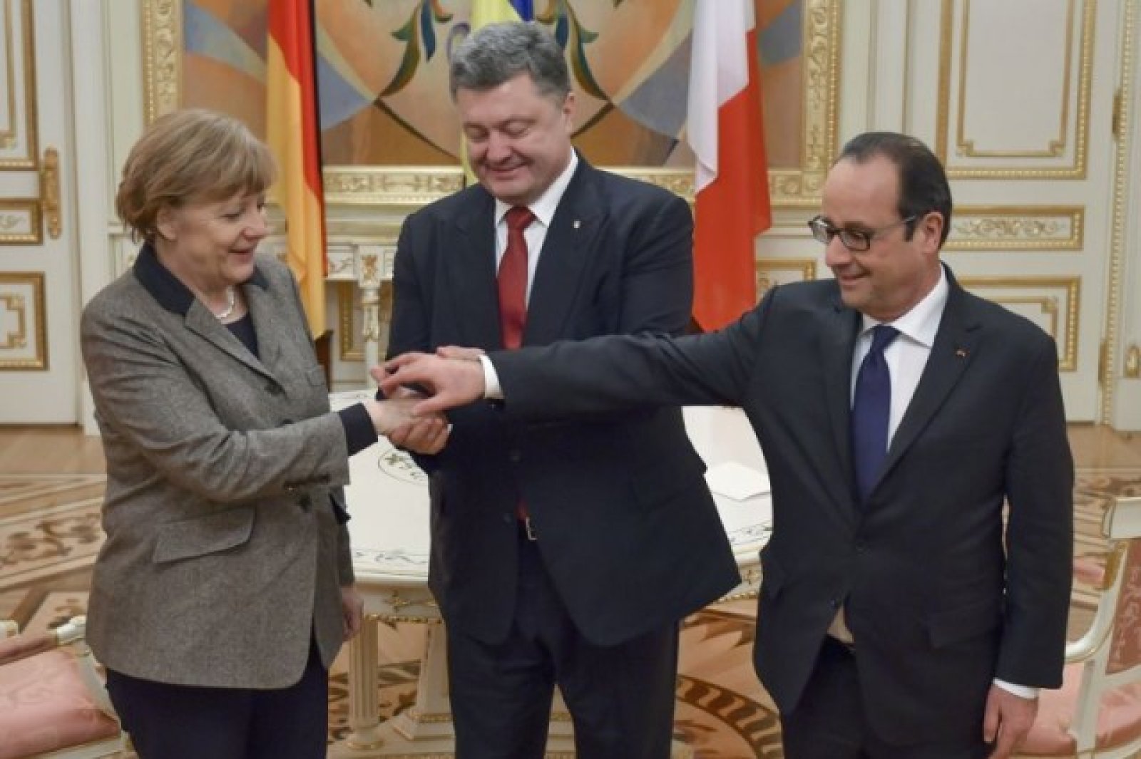 Оланд и Меркел предприеха нова инициатива в опит за мирно разрешаване на конфликта в Украйна заради ескалацията на напрежението между правителствените военни сили и проруските сепаратисти в Донецка и Луганска области. През последните две седмици боевете се възобновиха, след като бунтовниците отхвърлиха примирието от Минск от миналия ноември. От април 2014 г. досега в конфликта са загинали над 5 300 души.