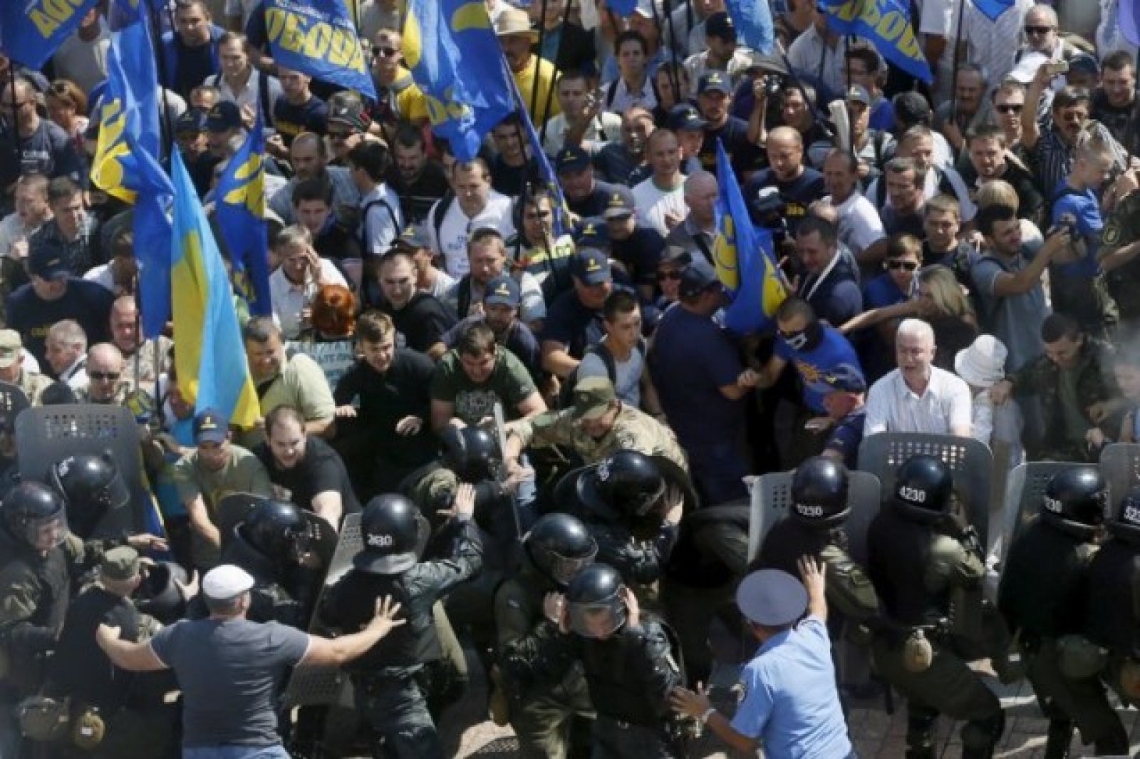 Демонстрантите в Киев се опитват да пробият загражденията около Върховната Рада в Киев, съобщава ВВС. Репортерите на медията разказват за десетки ранени, включително и журналисти.