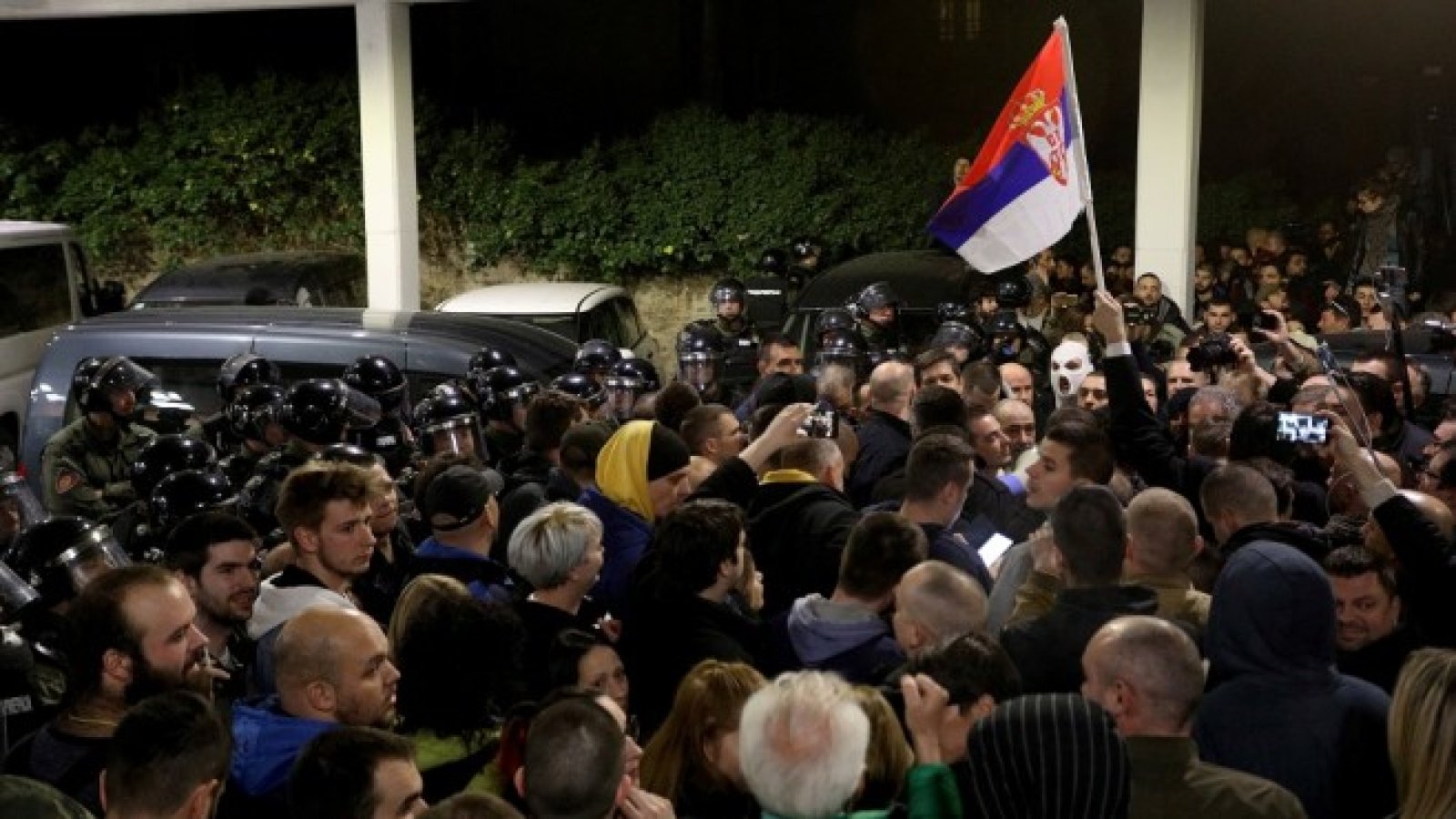 Опозиционните лидери Драган Джилас и Бошко Обрадович, лидер на партия "Двери", бяха сред последните изведени от сградата на РТС. След това събралите се опитаха отново да проникнат в сградата, но полицията ги избута с щитове.