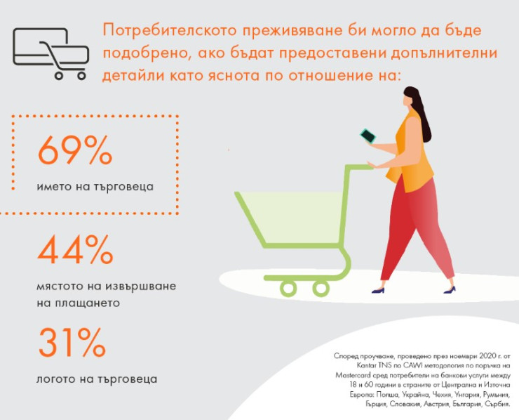 Участниците в проучването посочват, че искат да виждат повече детайли за трансакциите в историята на покупките си, за да ги разпознават по-бързо. Като най-полезна информация на първо място посочват името (67%) и логото (31%) на търговеца и място на покупката (44%). Така обогатена, историята на трансакциите би дала на потребителите увереността, че държат под контрол разплащанията си, според четири от десет участници в проучването.