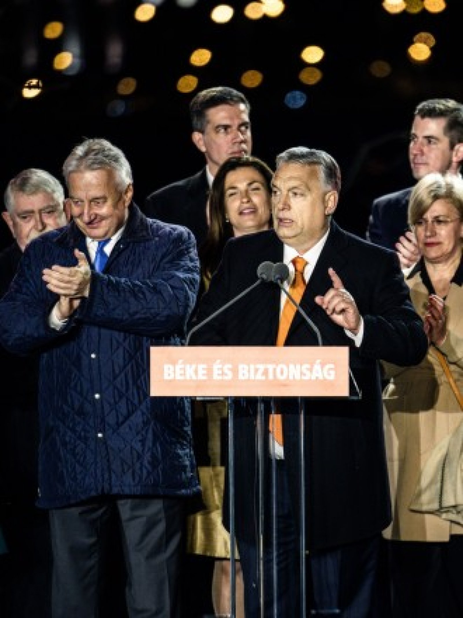 Заобиколен от водещи членове на партията си, триумфиращият Орбан заяви, че победата в неделя е станала факт въпреки обединените срещу него бюрократи от Брюксел и международни медии.