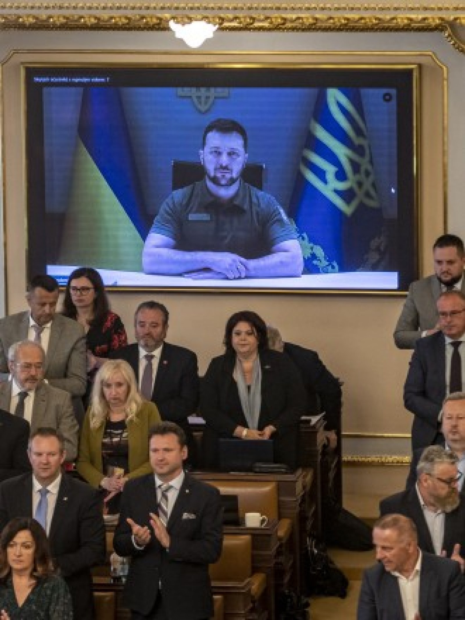 В реч пред двете камари на чешкия парламент чрез видео връзка Зеленски призова също за още санкции на ЕС срещу Русия заради нашествието ѝ в Украйна на 24 февруари.