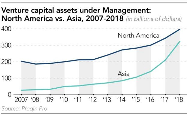 Фондовете за рисков капитал, фокусирани в Азия, разполагат с активи на стойност 323 млрд. долара в края на миналата година, констатира докладът, като в това отношение регионът бързо стопява разликата с фондовете за рисков капитал, съсредоточени в Северна Америка, които управляват активи на стойност 397 млрд. долара.