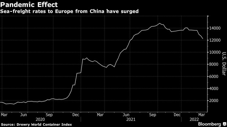 Над 1 млн. контейнера, които трябва да бъдат превозени по железопътна линия с дължина близо 10 хил. км, свързваща Западна Европа с Източен Китай през Русия, сега трябва да намерят нови маршрути по море. Това увеличава разходите и заплашва да влоши хаоса в глобалната верига за доставки, пише Bloomberg.