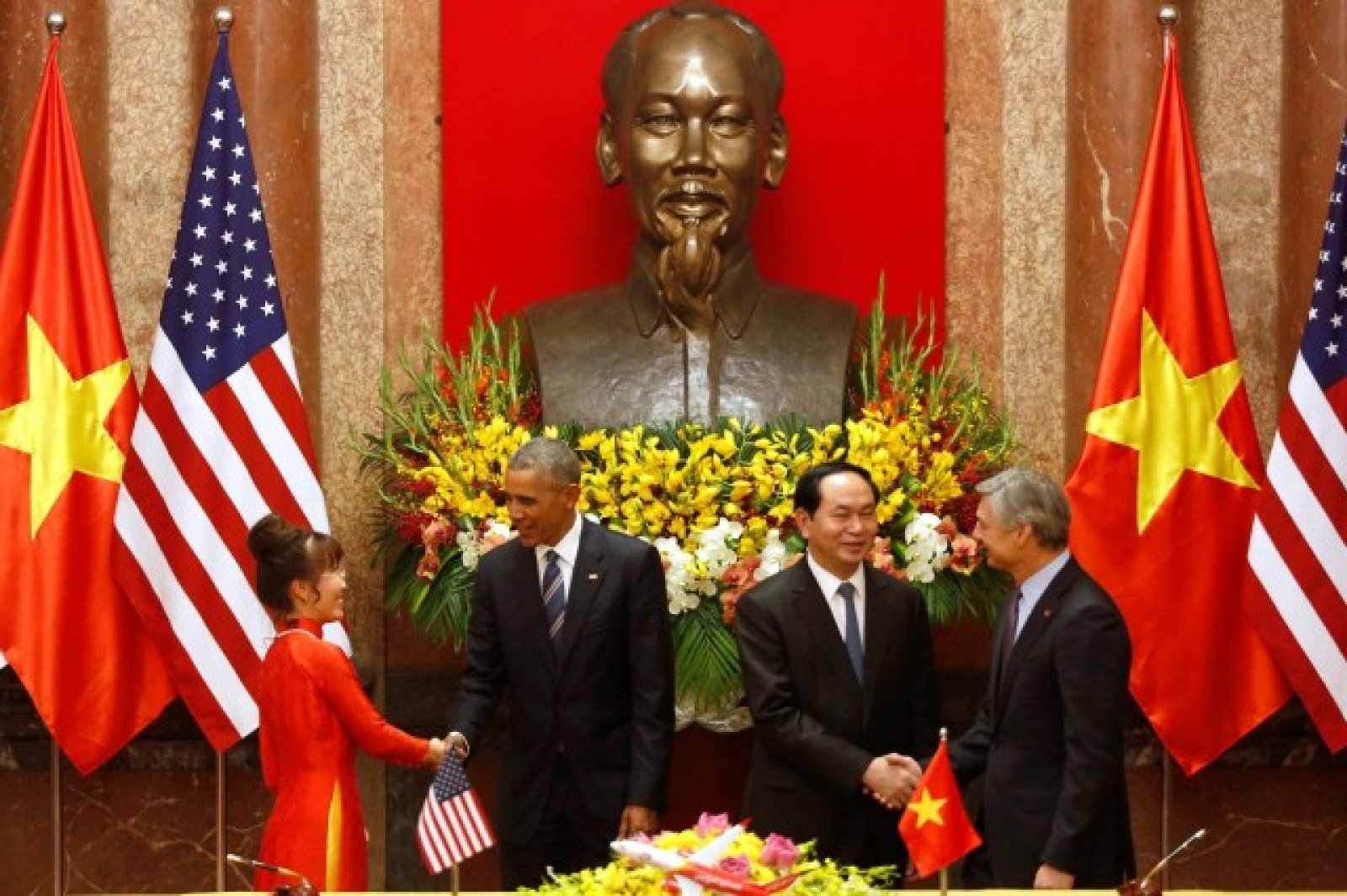 Обама и президентът на Виетнам Чан Дай Куанг присъстваха на тържествено подписване на серия от нови сделки между американски и виетнамски компании. Според Белия дом стойността на договорите е над 16 млрд. долара.