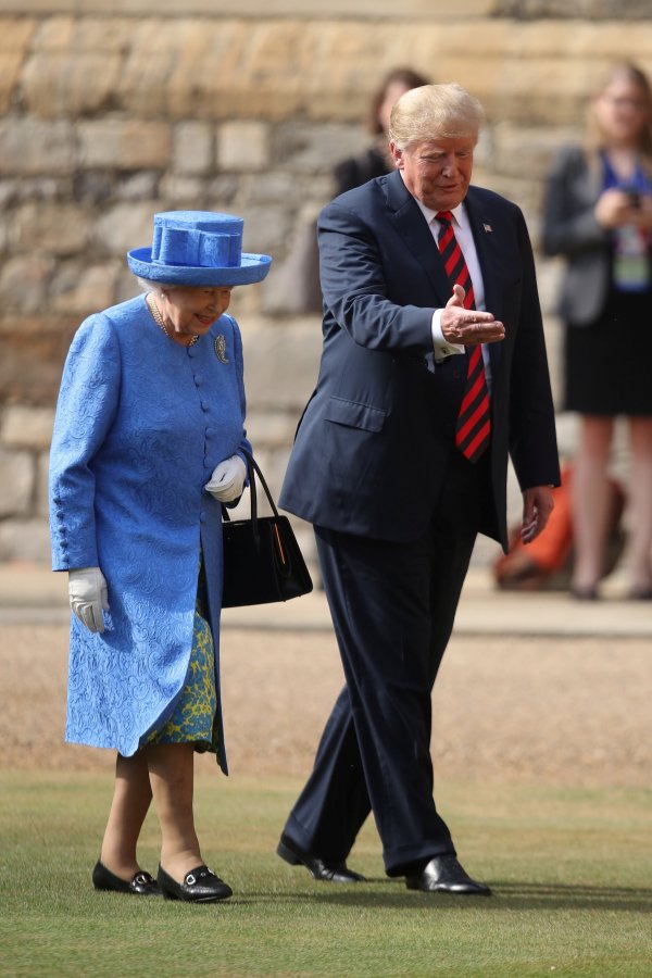 В един момент по време на инспекцията на караула Тръмп внезапно спря и 92-годишната кралица трябваше да го заобиколи. Графикът на Белия дом предвиждаше срещата на чай между кралицата и президентската двойка да продължи 25 минути. Това беше последната част от тяхното официално посещение в Англия.