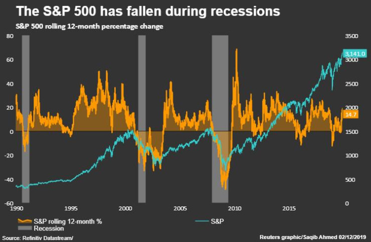 Пониженията на фондовите борси могат да бъдат сигнал за настъпване на рецесия. Пазарите регистрираха сериозни понижения през 2001 г. и 2008 г.