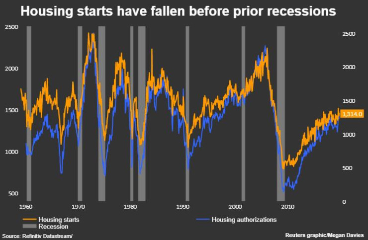 Строителните дейности и разрешителните за строеж на жилища се понижават преди някои от последните рецесии. Жилищното строителство в САЩ се възстанови през октомври, като разрешителните скочиха до близо 12-годишен връх, което показва една силна пазарна конюнктура на фона на по-ниските ипотечни нива.