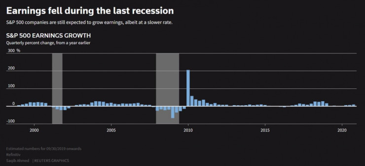 Ръстът на печалбите на компаниите от S&P 500 спря преди последната рецесия. В момента повечето прогнозни оценки за приходите и печалбата на тези дружества се понижават.