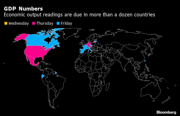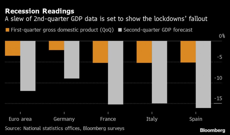 Данните за брутния вътрешен продукт (БВП) за Германия и САЩ се очакват с нетърпение в четвъртък. „Поне в Германия те могат да се окажат по-малко лоши, отколкото се очакваше междувременно", казва главният икономист на Commerzbank Йорг Кремер. Тук прогнозата му е минус 8,5 процента. Данни като индексът на седмичната активност на Бундесбанк предполагат, че второто тримесечие няма да е толкова лошо, колкото се опасяваха анализаторите преди три месеца.