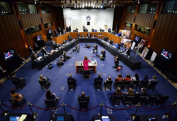 Подредбата на заседателната зала в Капитолия дава да се разбере, че става дума за необичайно заседание на Съдебната комисия на Сената на САЩ, което започна в понеделник, точно 22 дни преди президентските избори. Столовете са раздалечени, на масите имаше дезинфектанти за ръце и хората трябваше да пият от пластмасови чаши. Фактът, че всички присъстващи носеха маски, показва, че пандемията се приема по-сериозно в Сената, отколкото в Белия дом. Преди всичко това беше необичайна сесия, тъй като за първи път в историята на САЩ свободно място във Върховния съд трябва да бъде запълнено толкова скоро преди избори.