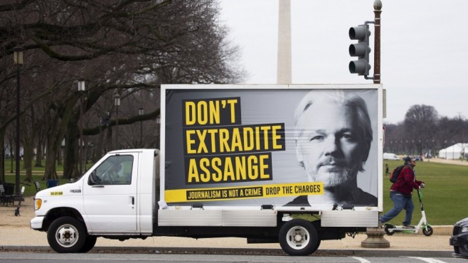 „Не екстрадирайте Асанж“ – призив, изписан на камион във Вашингтон. Днес британски съдия отхвърли искането на Съединените щати основателят на WikiLeaks Джулиан Асанж да бъде екстрадиран обратно, за да му бъдат повдигнати обвинения в шпионаж. След решението Мексико предложи политическо убежище на Асанж.