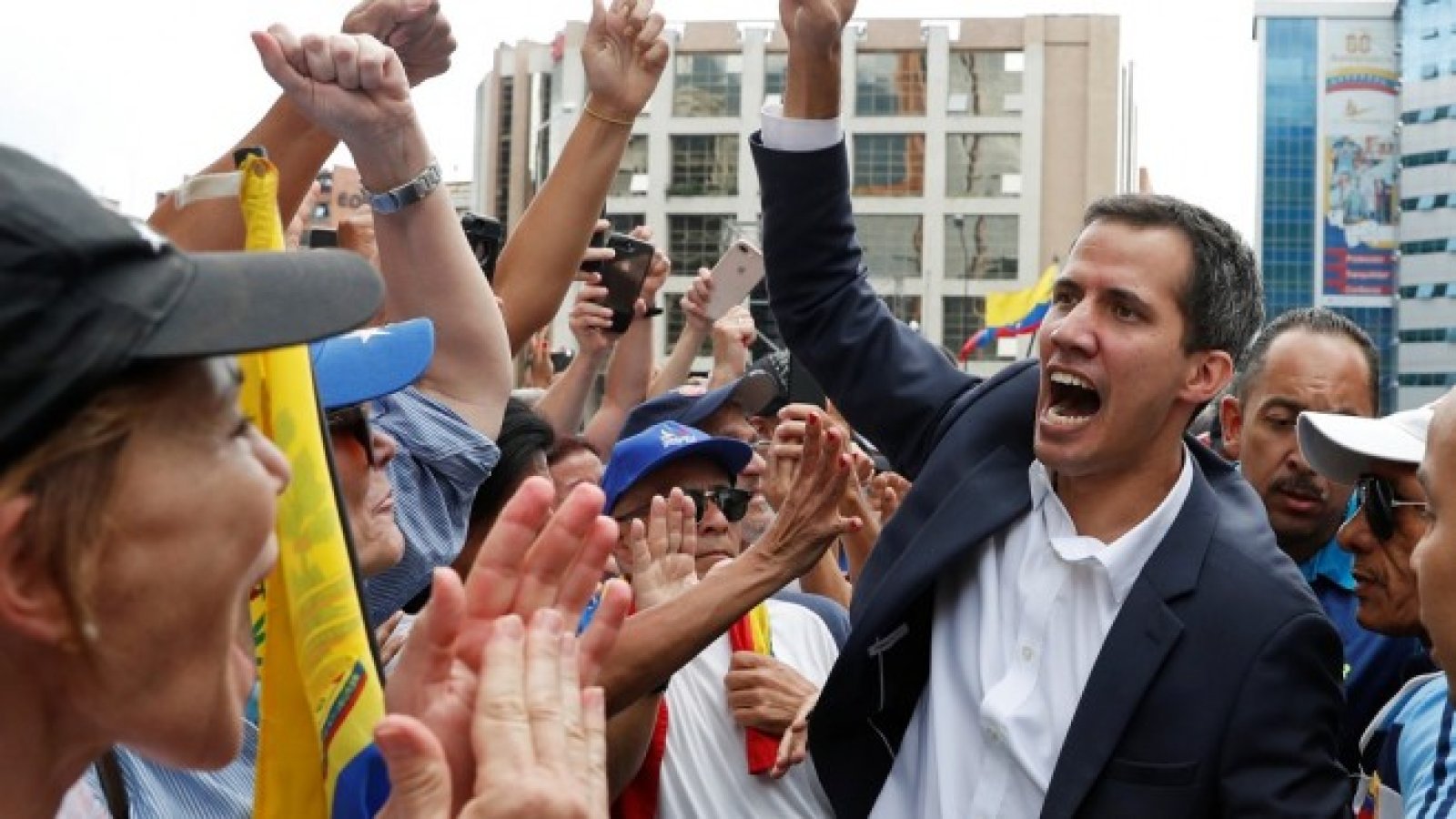 Хиляди демонстранти блокираха улиците в източната част на Каракас, скандирайки „Тръгвай се, Мадуро“ и „Гуайдо, президент“, докато размахваха националния флаг.
