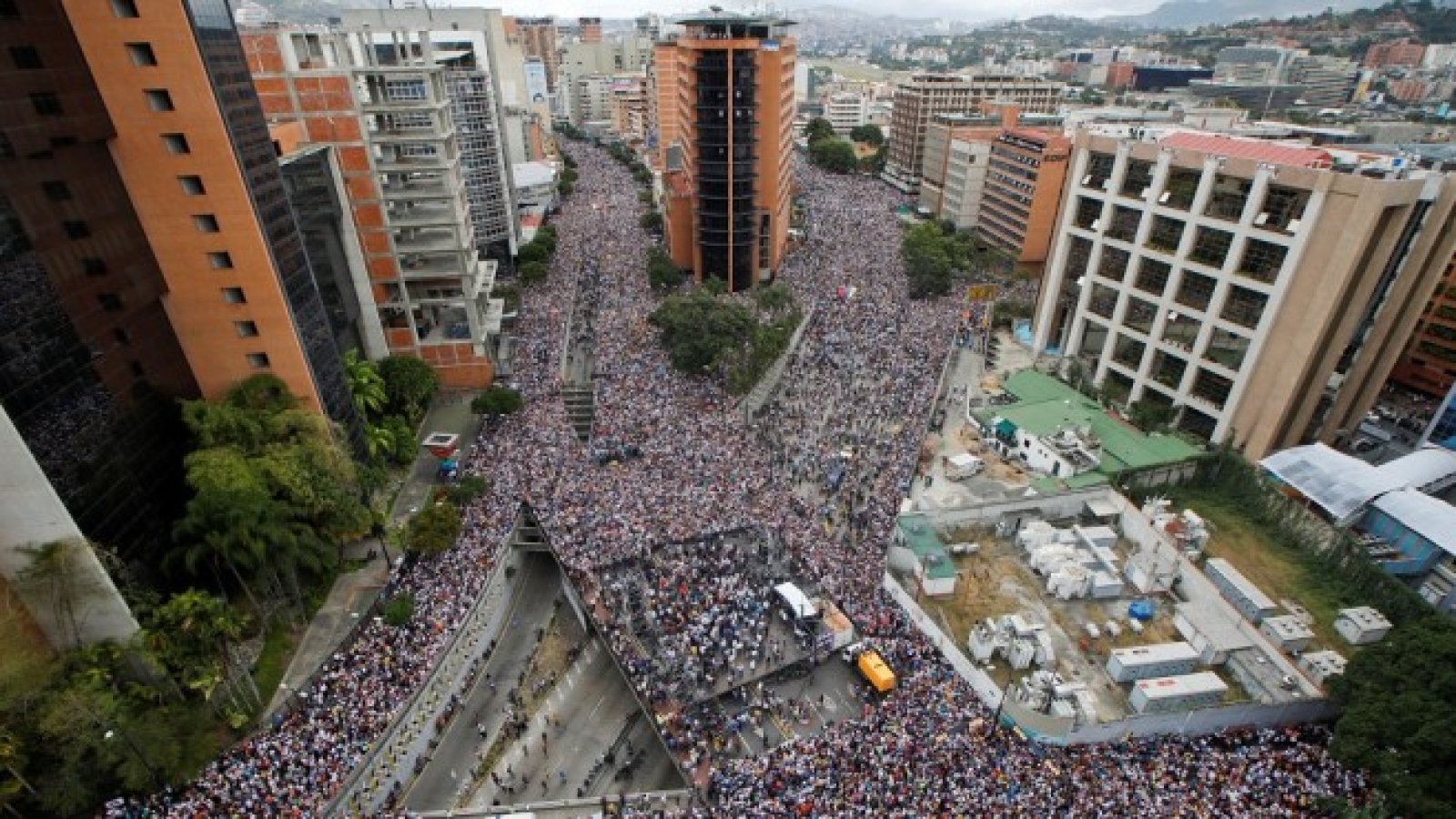 Хиляди демонстрираха в сряда по улиците на венецуелската столица Каракас, скандирайки „Тръгвай си, Мадуро“ и „Гуайдо, президент“. Временният президент Хуан Гуайдо вече получи подкрепата на САЩ, Бразилия, Колумбия, Перу и Канада. Снимка: Ройтерс
