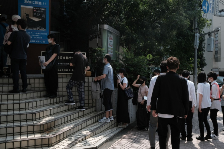 Опашка за ваксинация в Токио. Снимка: Soichiro Koriyama/Bloomberg