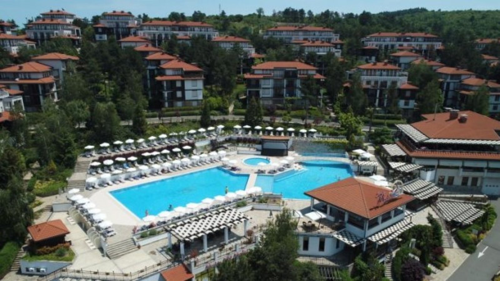 апартамента. Селището разполага с 5 зони с басейни и соларни тераси, четири тематични ресторанта, магазини, уелнес център и много други услуги и съоръжения.