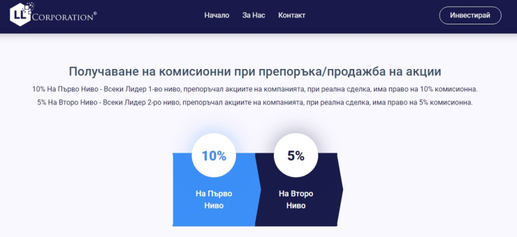 Любопитен е и друг момент от предложенията на дружеството - получаване на комисионни при препоръка/продажба на акции. От дружеството предлагаха в сайта 10% на първо ниво и 5% на второ ниво, като не става ясно как се определят лидерите на тези нива.