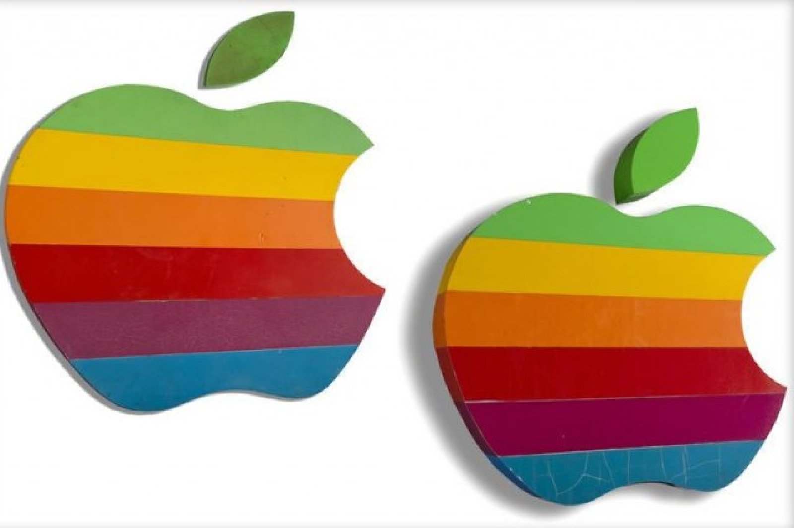 Две от оригиналните цветни лога, стояли преди години на сградата на централния офис на Apple, ще бъдат продадени на търг с начална стойност от по 10 000 долара, предава Cnet. Продажбата ще се състои в рамките на наддаването „Историята на 20-ти век“, което ще се проведе на 4 юни в Ню Йорк.