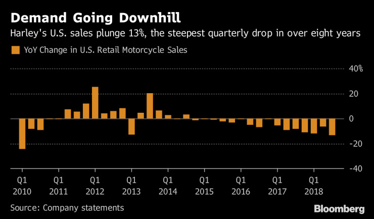 „Много притежатели на мотор Harley-Davidson възнамеряват да бойкотират производителя, ако производството бъде преместено зад граница“, написа Тръмп в средата на август. Harley има и друг проблем в родината си – застаряващата клиентела.