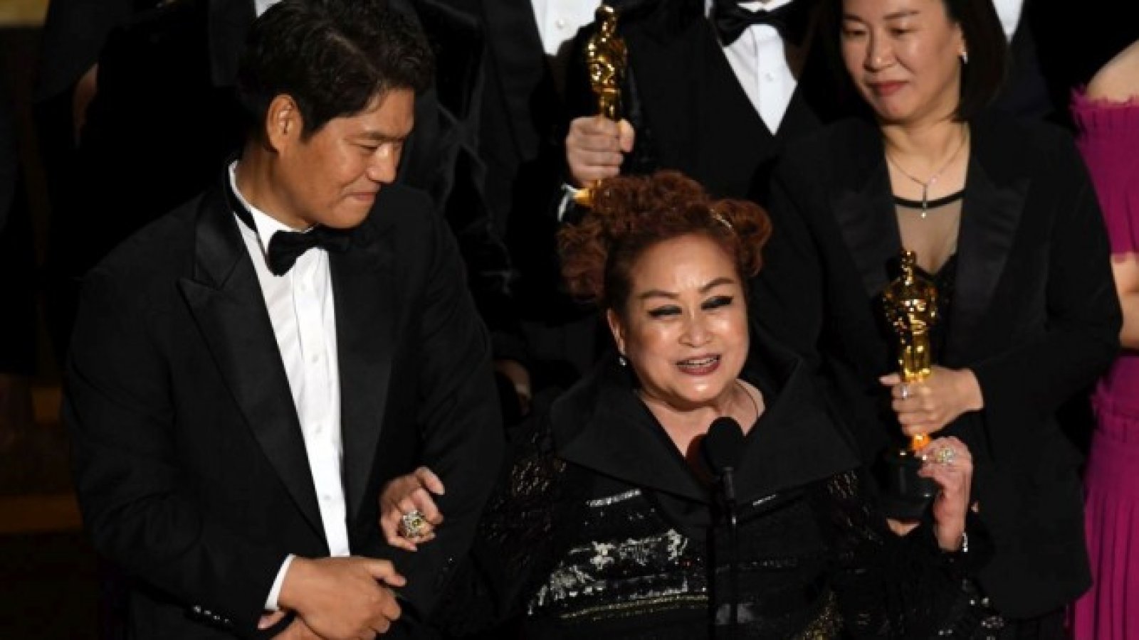 „Наистина искам да благодаря на нашата корейска филмова публика“, каза тя на церемонията в Лос Анджелис. „Това ни кара да не бъдем самодоволни и да продължаваме да натискаме директорите и създателите, както и да останем иновативни“, каза тя.