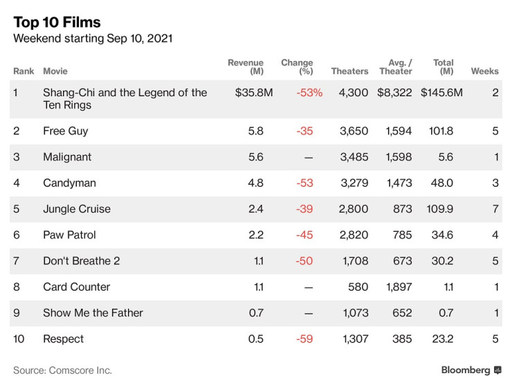 “Шан-Чи и легендата за десетте пръстена”, първият филм на Marvel, в който участва азиатска звезда, оглави боксофиса в Северна Америка за втори пореден уикенд, продължавайки успеха си, като подобри рекорда за продажби на билети за уикенда, включващ Деня на труда, пише Bloomberg.