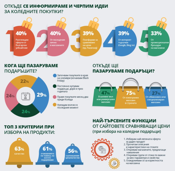 Въпреки че епидемиологичната криза не е приключила, много по-малко хора планират да купуват подаръци от онлайн магазини, но процентът все пак остава висок – 75%, като през 2020 г. те бяха 82%.