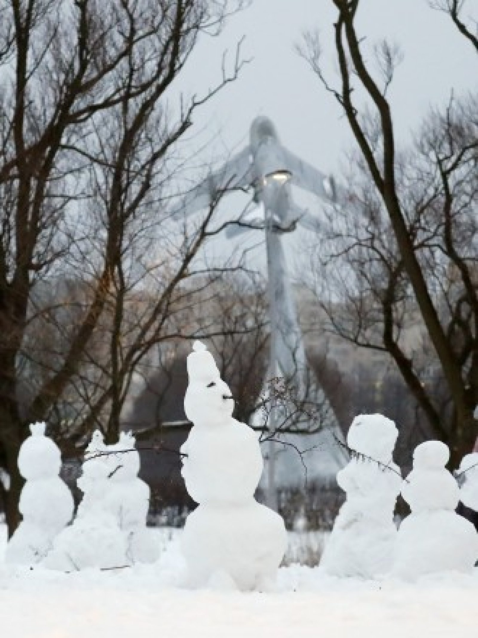Момиче прави снежен човек по време на коледните празници в Парка на авиатора в Санкт Петербург, Русия. Руснаците празнуват Коледа на 7 януари според руския православен Юлиански календар, с 13 дни след Коледа на 25 декември по Грегорианския календар.