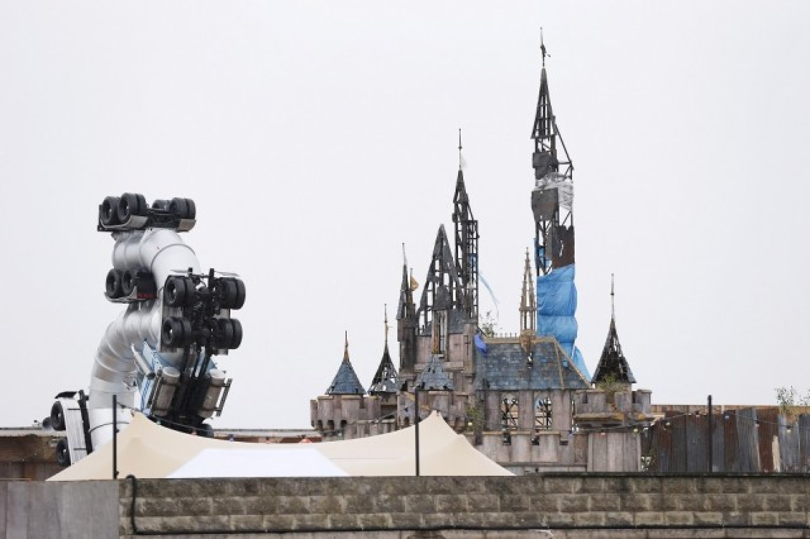 Dismaland е описван от Банкси като „анархизъм в начален стадий“ и осмива туризма и индустрията с тематични паркове.