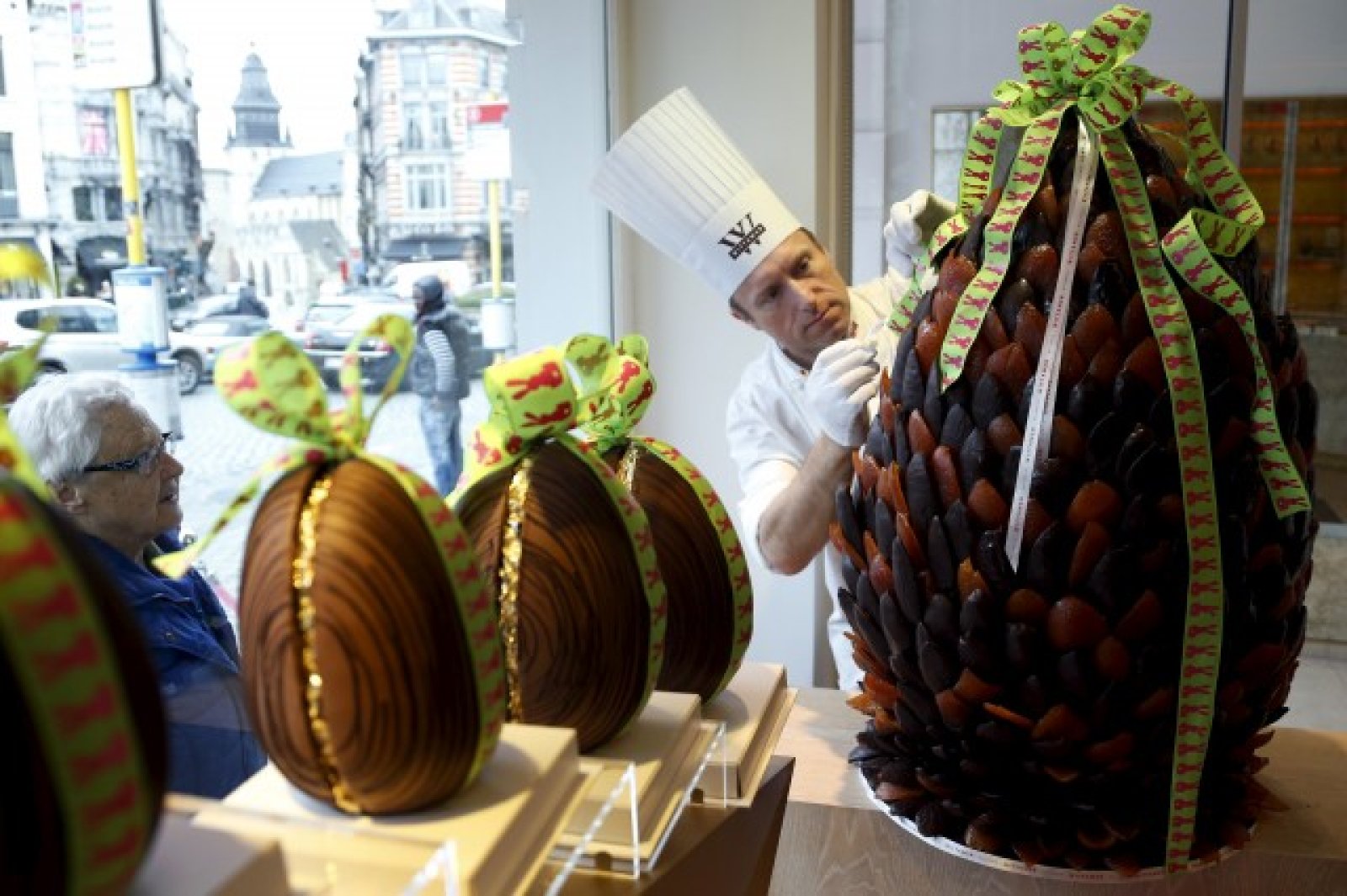 В белгийски магазин, уместно кръстен Planete Chocolat, рафтовете са изпълнени с примамливи великденски съкровища, които имат за цел да привлекат купувачите – зайчета с панделки, красиви яйца в опаковки и елегантни кутии с бонбони.