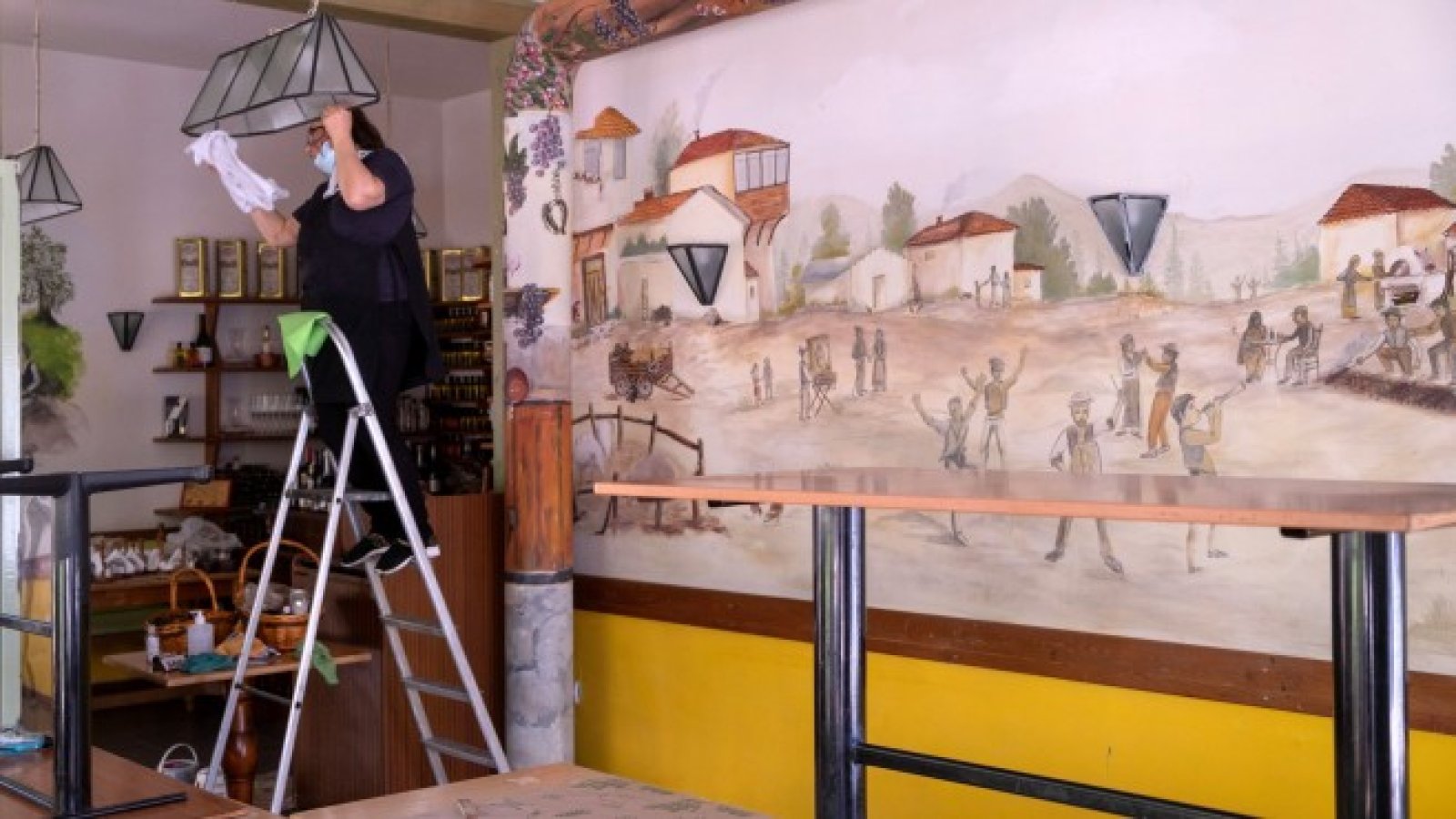 Подготовка за отварянето на кафенетата и ресторантите в Солун, Гърция. Гръцките заведения ще заработят отново на 3 май, но ще приемат посетители само навън.