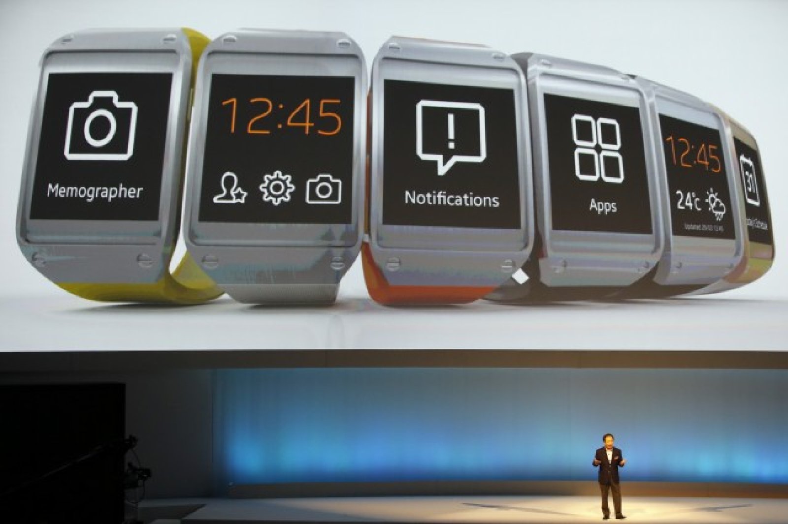 Това беше най-лошото пазената тайна в технологичната индустрия. Както се очакваше, Samsung представи в сряда своя компютърен часовник Galaxy Gear. Джаджата позволява на потребителите да се обаждат, да разглеждат съобщения и да диктуват текстови съобщения (SMS), както бе демонстрирано от концерна в Берлин в навечерието на изложението за потребителска електроника IFA.