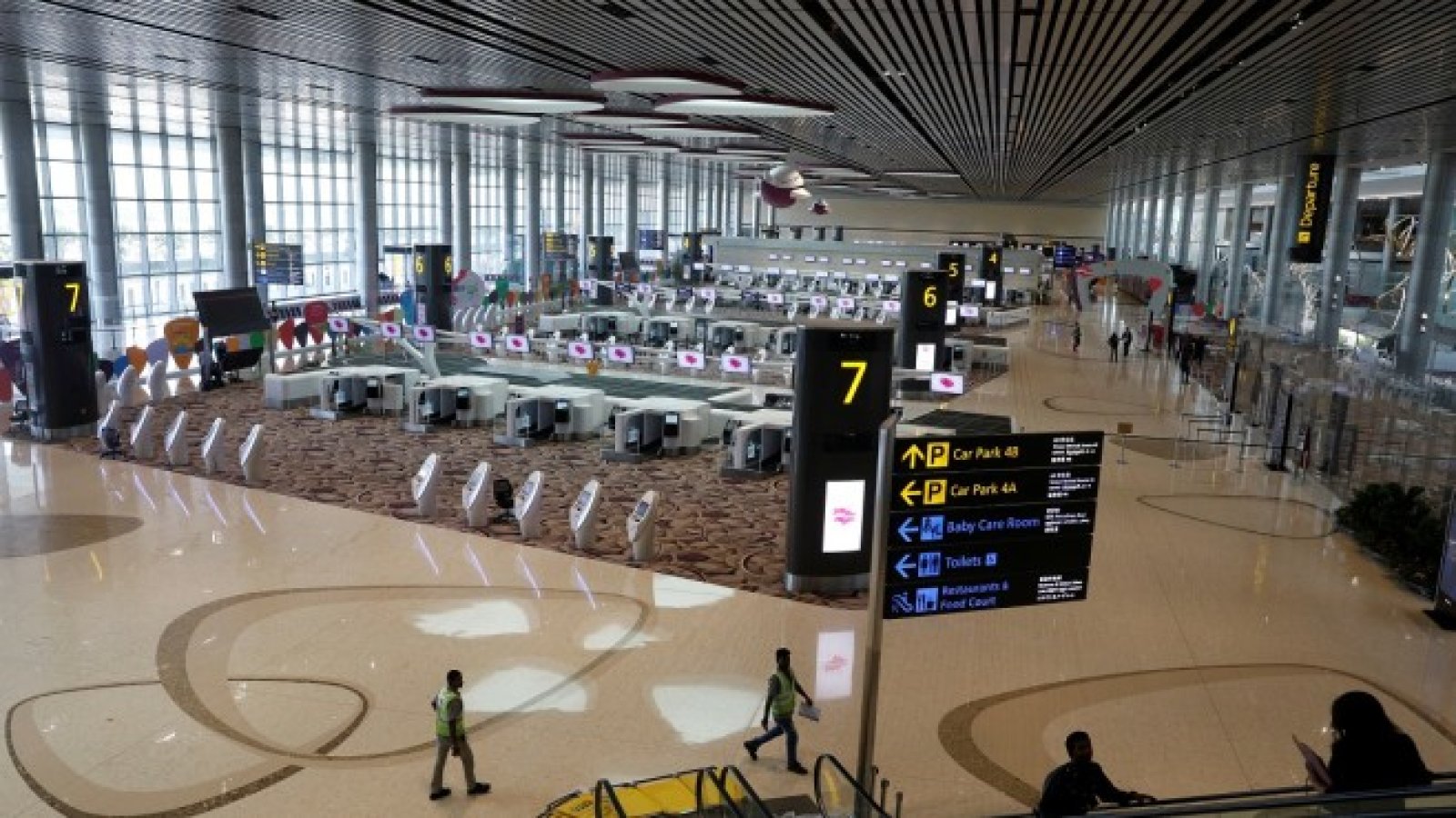 Багажът на пътниците се събира от роботи, а пък самите пътници чакат в зала с вътрешна градина преди лицата им да бъдат сканирани и да преминат през напълно автоматизирания контрол: ето това би могло да прилича на летището на бъдещето, разказва Сам Рийвс от Франс прес.