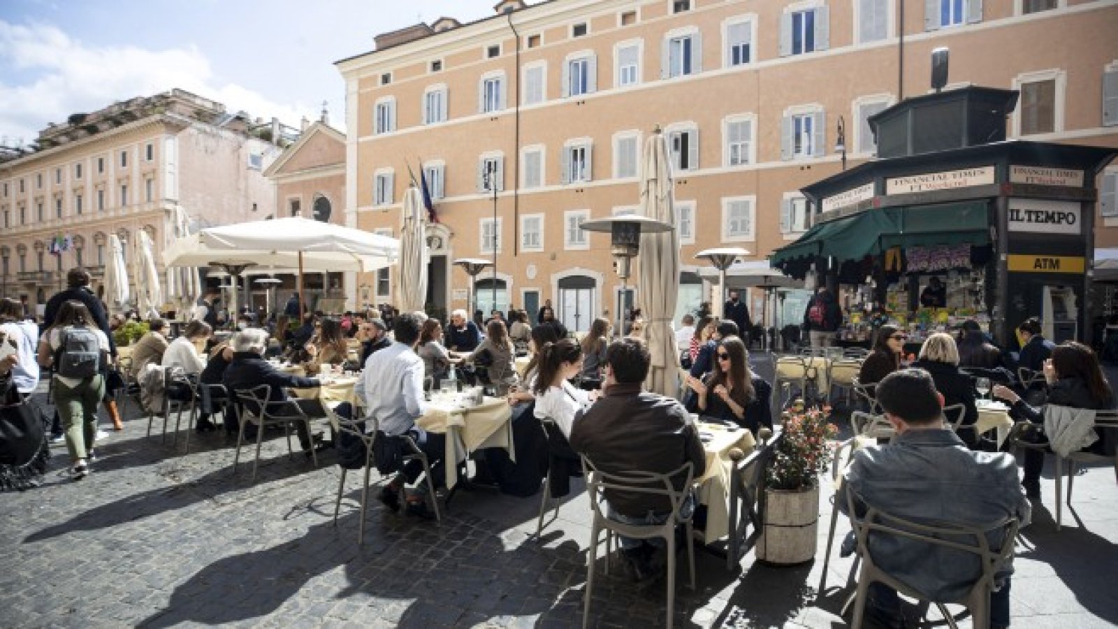 Италианци се наслаждават на хубавото време на заведения на открито в Рим. От понеделник страната отново ще бъде под блокада заради нарастващия брой нови случаи на Covid-19.